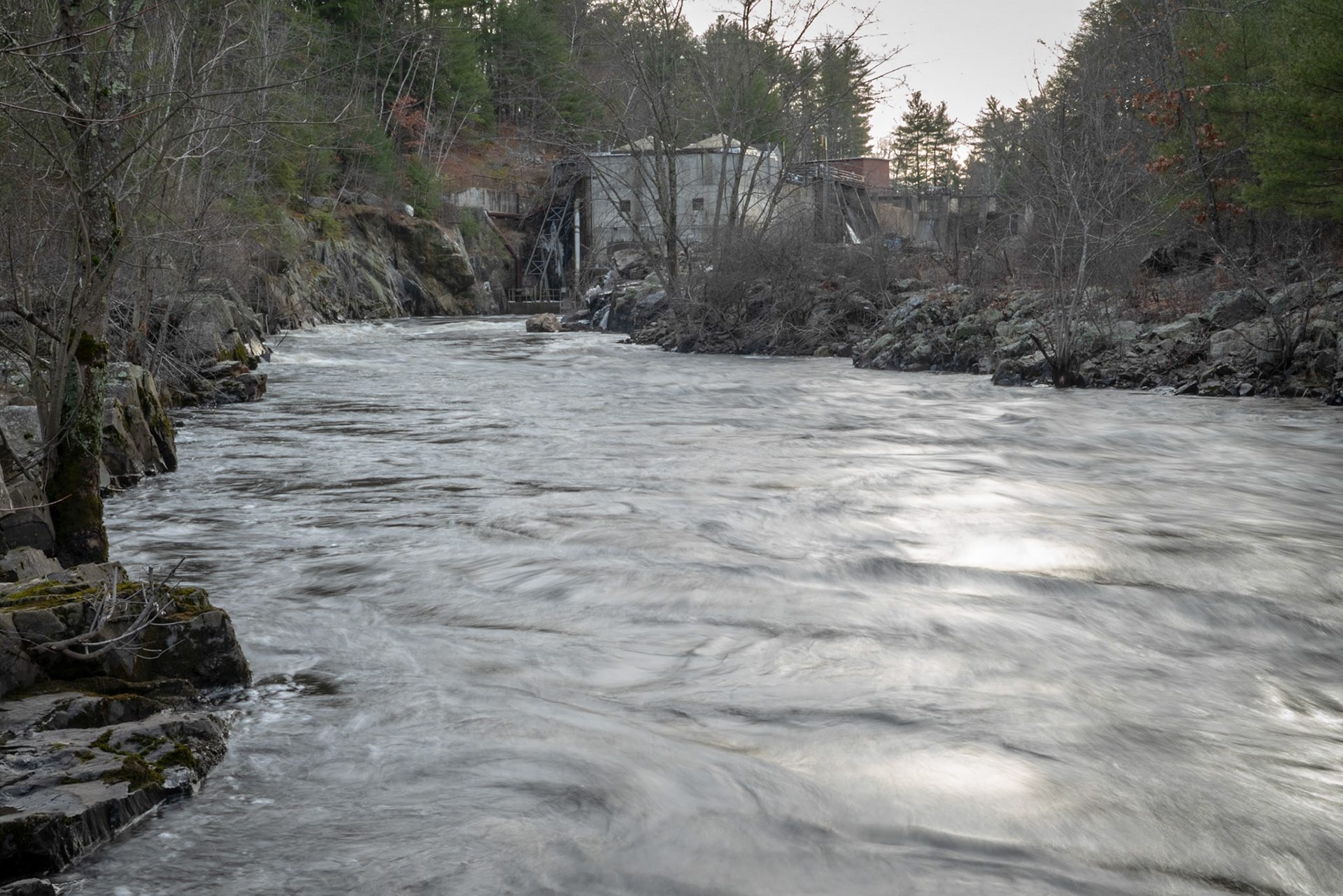 At Mine Falls in Nashua NH there is a hydroelectric power station, and a canal system that dates to the late ninteeth century. This infrastructure is adjacent to the wooded park where I frequently photograph. I am fascinated by look of the Gate House, Dam, and Power Station and often photograph them as I enter and leave the park. This is a selection of some of the images that I've made there.